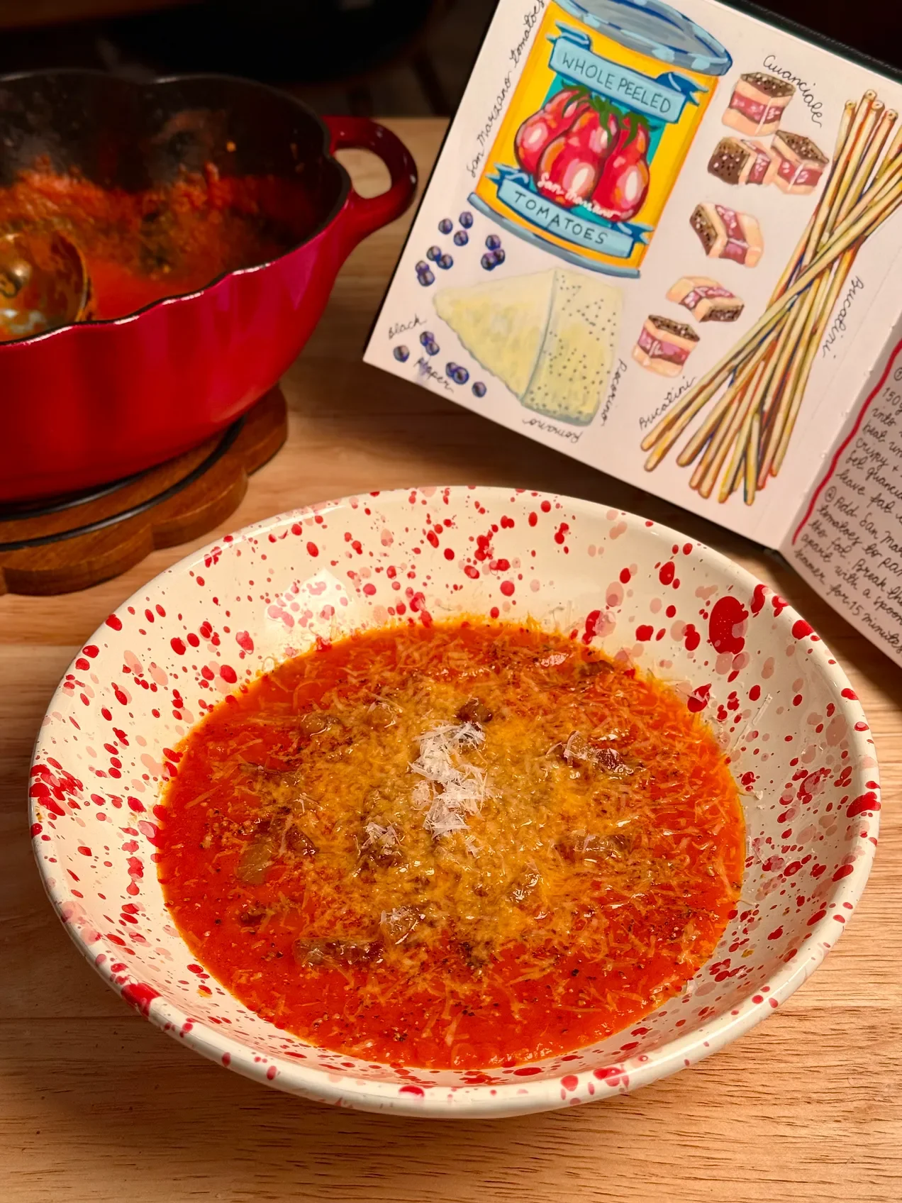 Amatriciana Soup with Pecorino & Provolone Grilled Cheese Recipe